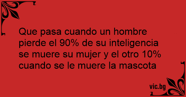 Que pasa cuando un hombre pierde el 90% de su inteligencia se muere su mujer y el otro 10% cuando se le muere la mascota
