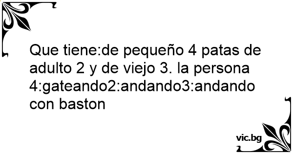 Que tiene:de pequeño 4 patas de adulto 2 y de viejo 3. la persona