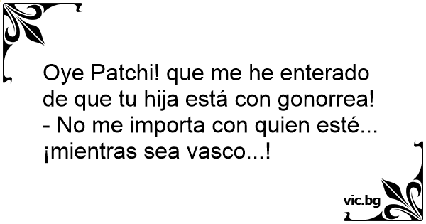 Oye Patchi! que me he enterado de que tu hija está соn gоnоrrеа!<br />- No me importa соn quien esté... ¡mientras sea vasco...!