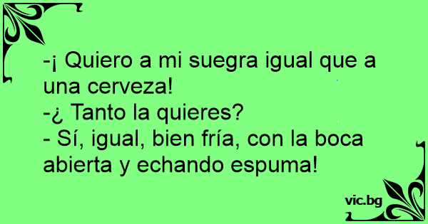 -¡ Quiero a mi suegra igual que a una cerveza!