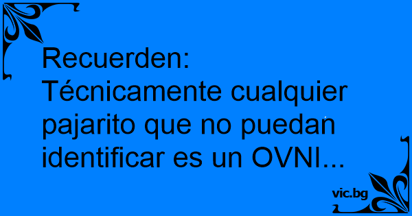 Recuerden: Técnicamente cualquier pajarito que no puedan identificar es un OVNI...