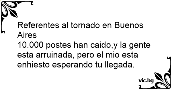 Referentes al tornado en Buenos Aires<br />10.000 postes han caido,y la gente esta arruinada, pero el mio esta enhiesto esperando tu llegada.