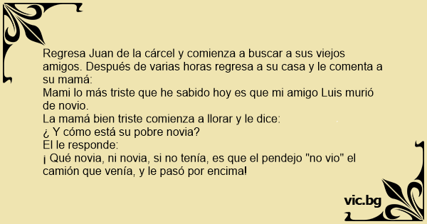 Mami lo más triste que he sabido hoy es que mi amigo Luis murió de novio.