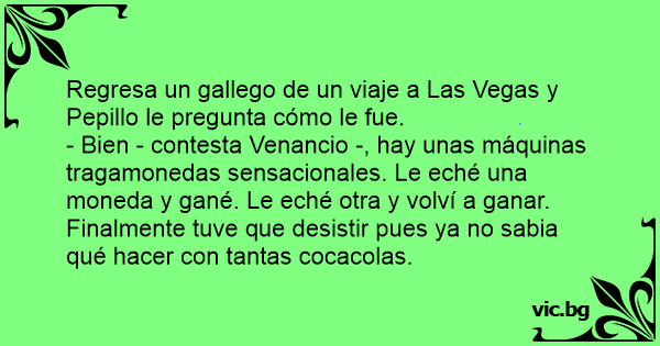 Regresa un gallego de un viaje a Las Vegas y Pepillo le pregunta cómo le fue.