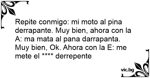 Repite conmigo: mi moto al pina derrapante. Muy bien, ahora соn la A: ma mata al pana darrapanta. Muy bien, Ok. Ahora соn la E: me mete el **** derrepente