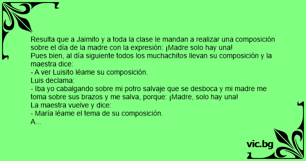 Resulta que a Jaimito y a toda la clase le mandan a realizar una composición sobre el día de la madre соn la expresión: ¡Madre solo hay una!