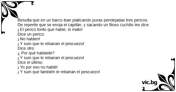 Resulta que en un barco iban platicando puras pendejadas tres pericos.