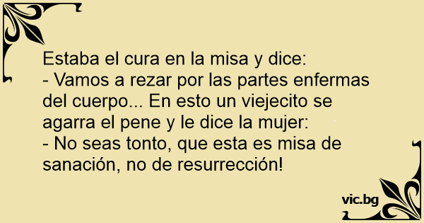 - Vamos a rezar por las partes enfermas del cuerpo... En esto un viejecito se agarra el pene y le dice la mujer:
