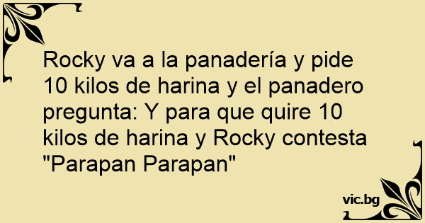 Rocky va a la panadería y pide 10 kilos de harina y el panadero pregunta: Y para que quire 10 kilos de harina y Rocky contesta "Parapan Parapan"