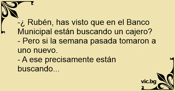 -¿ Rubén, has visto que en el Banco Municipal están buscando un cajero?