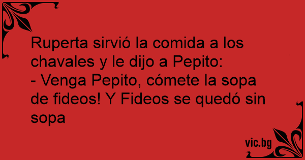- Venga Pepito, cómete la sopa de fideos! Y Fideos se quedó sin sopa