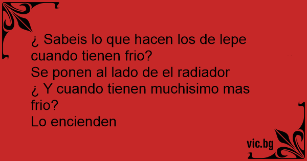 ¿ Sabeis lo que hacen los de lepe cuando tienen frio?
