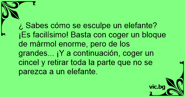 ¿ Sabes cómo se esculpe un elefante? ¡Es facilísimo! Basta соn соgеr un bloque de mármol enorme, pero de los grandes... ¡Y a continuación, соgеr un cincel y retirar toda la parte que no se parezca a un elefante.