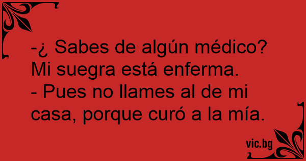 -¿ Sabes de algún médico? Mi suegra está enferma.