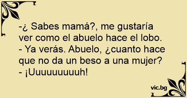 - Ya verás. Abuelo, ¿cuanto hace que no da un beso a una mujer?