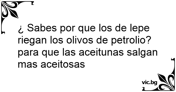 ¿ Sabes por que los de lepe riegan los olivos de petrolio? para que las aceitunas salgan mas aceitosas