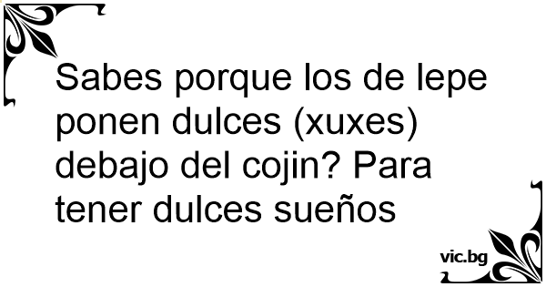 Sabes porque los de lepe ponen dulces (xuxes) debajo del cojin? Para tener dulces sueños
