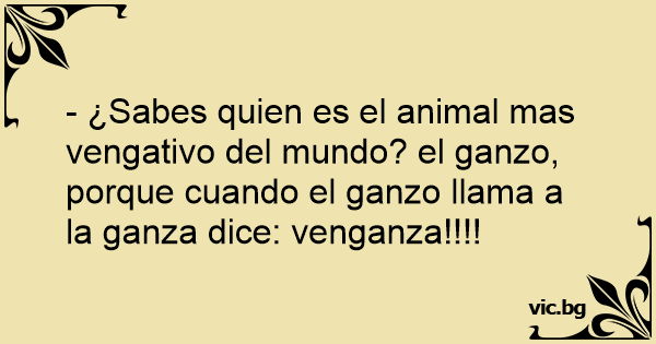 - ¿Sabes quien es el animal mas vengativo del mundo? el ganzo, porque cuando el ganzo llama a la ganza dice: venganza!!!!