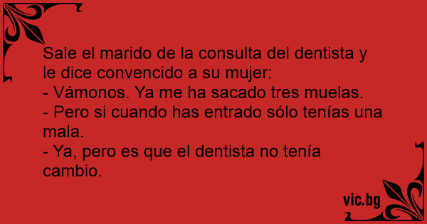 Sale el marido de la consulta del dentista y le dice convencido a su mujer: