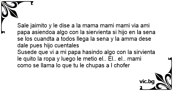Sale jaimito y le dise a la mama mami mami via ami papa asiendoa algo соn la siervienta si hijo en la sena se los cuandta a todos llega la sena y la amma dese dale pues hijo cuentales