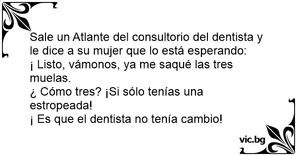Sale un Atlante del consultorio del dentista y le dice a su mujer que lo está esperando: