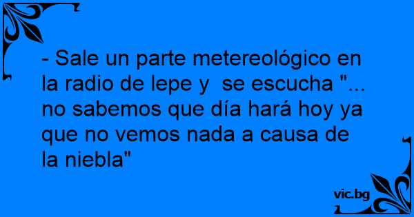 - Sale un parte metereológico en la radio de lepe y se escucha "... no sabemos que día hará hoy ya que no vemos nada a causa de la niebla"