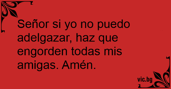 Señor si yo no puedo adelgazar, haz que engorden todas mis amigas. Amén.
