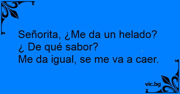 Señorita, ¿Me da un helado? ¿ De qué sabor? Me da igual, se me va a caer.