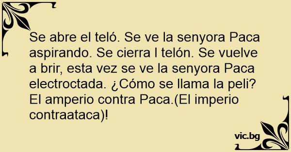 Se abre el teló. Se ve la senyora Paca aspirando. Se cierra l telón. Se vuelve a brir, esta vez se ve la senyora Paca electroctada. ¿Cómo se llama la peli?