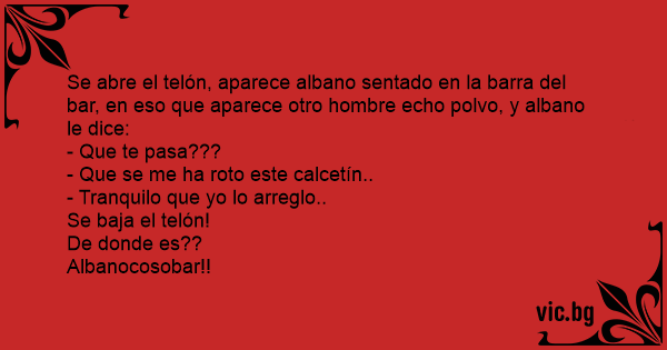 Se abre el telón, aparece albano sentado en la barra del bar, en eso que aparece otro hombre echo polvo, y albano le dice: