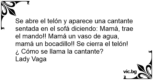Se abre el telón y aparece una cantante sentada en el sofá diciendo: Mamá, trae el mando!! Mamá un vaso de agua, mamá un bocadillo!! Se cierra el telón!