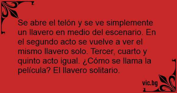 Se abre el telón y se ve simplemente un llavero en medio del escenario. En el segundo acto se vuelve a ver el mismo llavero solo. Tercer, cuarto y quinto acto igual. ¿Cómo se llama la película? El llavero solitario.