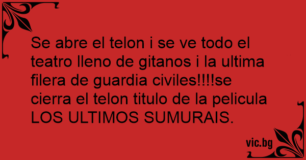 Se abre el telon i se ve todo el teatro lleno de gitanos i la ultima filera de guardia civiles!!!!se cierra el telon titulo de la pelicula LOS ULTIMOS SUMURAIS.