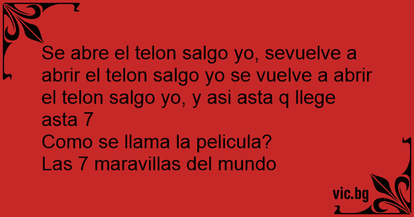 Se abre el telon salgo yo, sevuelve a abrir el telon salgo yo se vuelve a abrir el telon salgo yo, y asi asta q llege asta 7