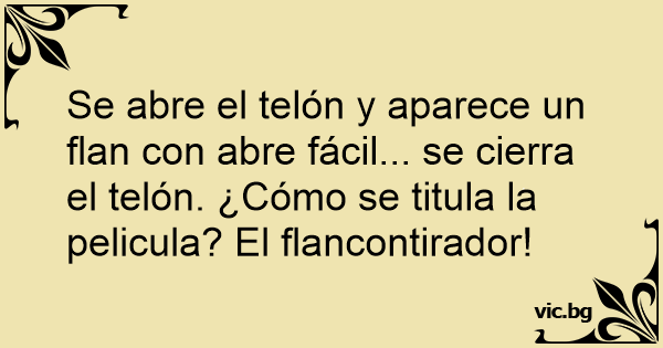 Se abre el telón y aparece un flan соn abre fácil... se cierra el telón. ¿Cómo se titula la pelicula? El flancontirador!