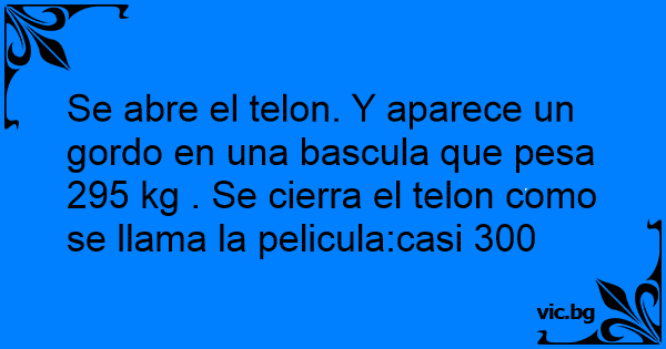 Se abre el telon. Y aparece un gordo en una bascula que pesa 295 kg . Se cierra el telon como se llama la pelicula:casi 300