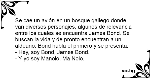 Se cae un avión en un bosque gallego donde van diversos personajes, algunos de relevancia entre los cuales se encuentra James Bond. Se buscan la vida y de pronto encuentran a un aldeano. Bond habla el primero y se presenta: