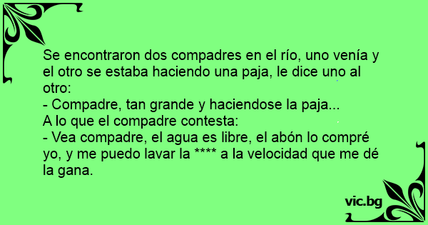 Se encontraron dos compadres en el río, uno venía y el otro se estaba haciendo una paja, le dice uno al otro:
