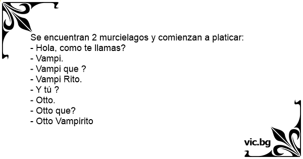 Se encuentran 2 murcielagos y comienzan a platicar: