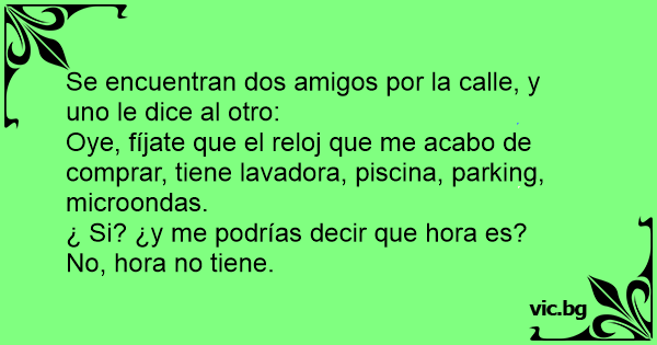 Oye, fíjate que el reloj que me acabo de comprar, tiene lavadora, piscina, parking, microondas.