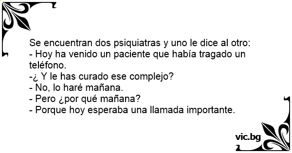 Se encuentran dos psiquiatras y uno le dice al otro: