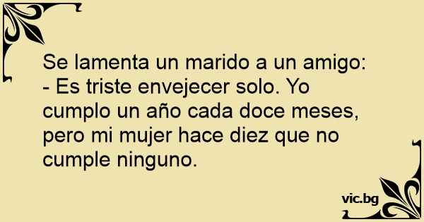 - Es triste envejecer solo. Yo cumplo un año cada doce meses, pero mi mujer hace diez que no cumple ninguno.