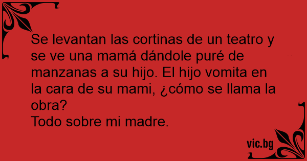 Se levantan las cortinas de un teatro y se ve una mamá dándole puré de manzanas a su hijo. El hijo vomita en la cara de su mami, ¿cómo se llama la obra?