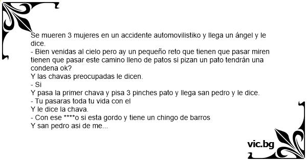 Y pasa la primer chava y pisa 3 pinches pato y llega san pedro y le dice.