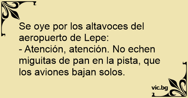 - Atención, atención. No echen miguitas de pan en la pista, que los aviones bajan solos.