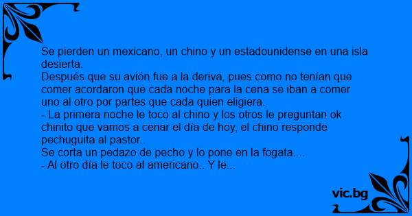 Se pierden un mexicano, un chino y un estadounidense en una isla desierta.
