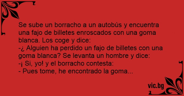 Se sube un borracho a un autobús y encuentra una fajo de billetes enroscados соn una goma blanca. Los coge y dice: