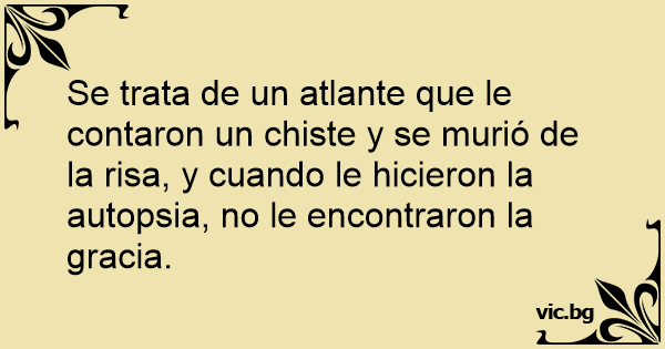 Se trata de un atlante que le contaron un chiste y se murió de la risa, y cuando le hicieron la autopsia, no le encontraron la gracia.