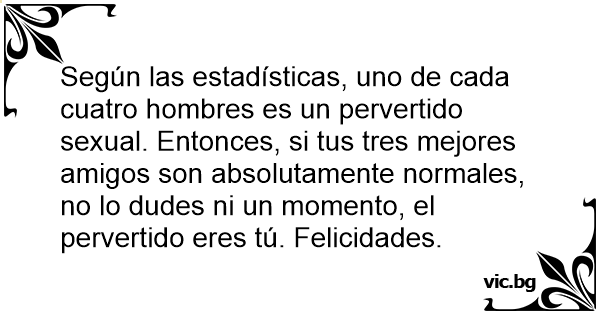 Según las estadísticas, uno de cada cuatro hombres es un pervertido sеxuаl. Entonces, si tus tres mejores amigos son absolutamente normales, no lo dudes ni un momento, el pervertido eres tú. Felicidades.