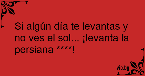 Si algún día te levantas y no ves el sol... ¡levanta la persiana ****!